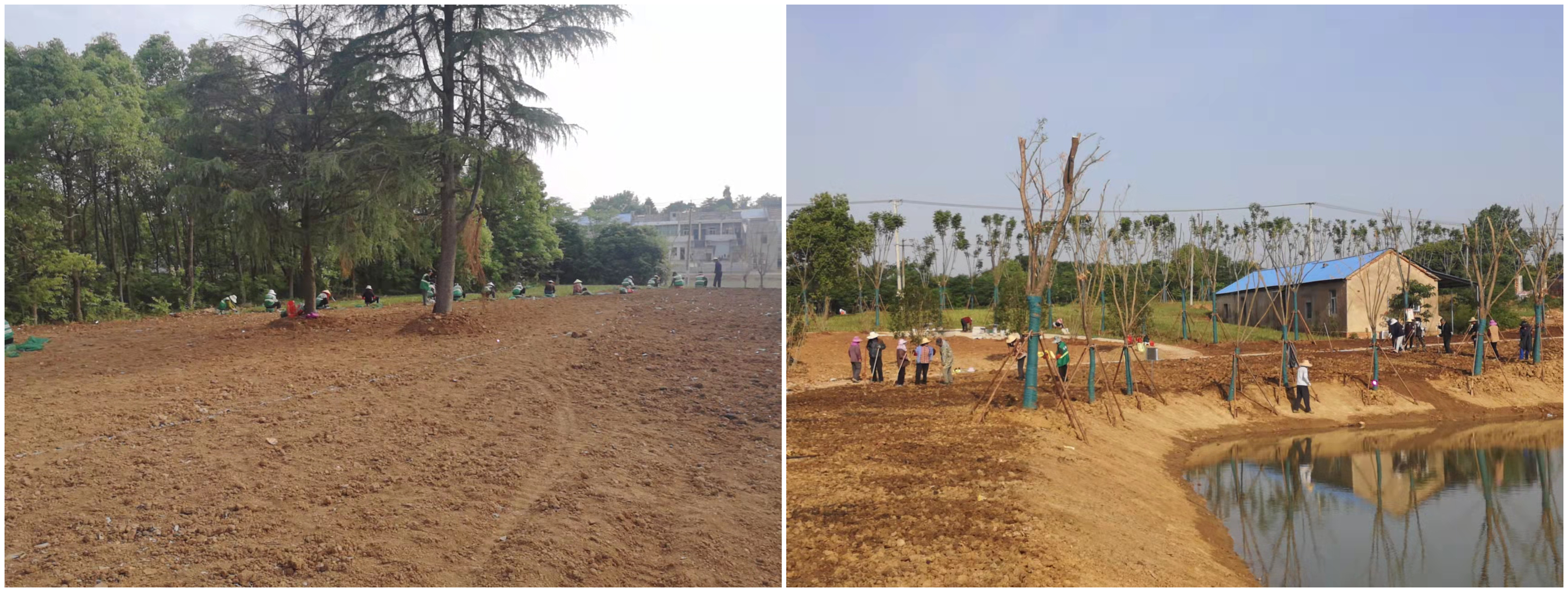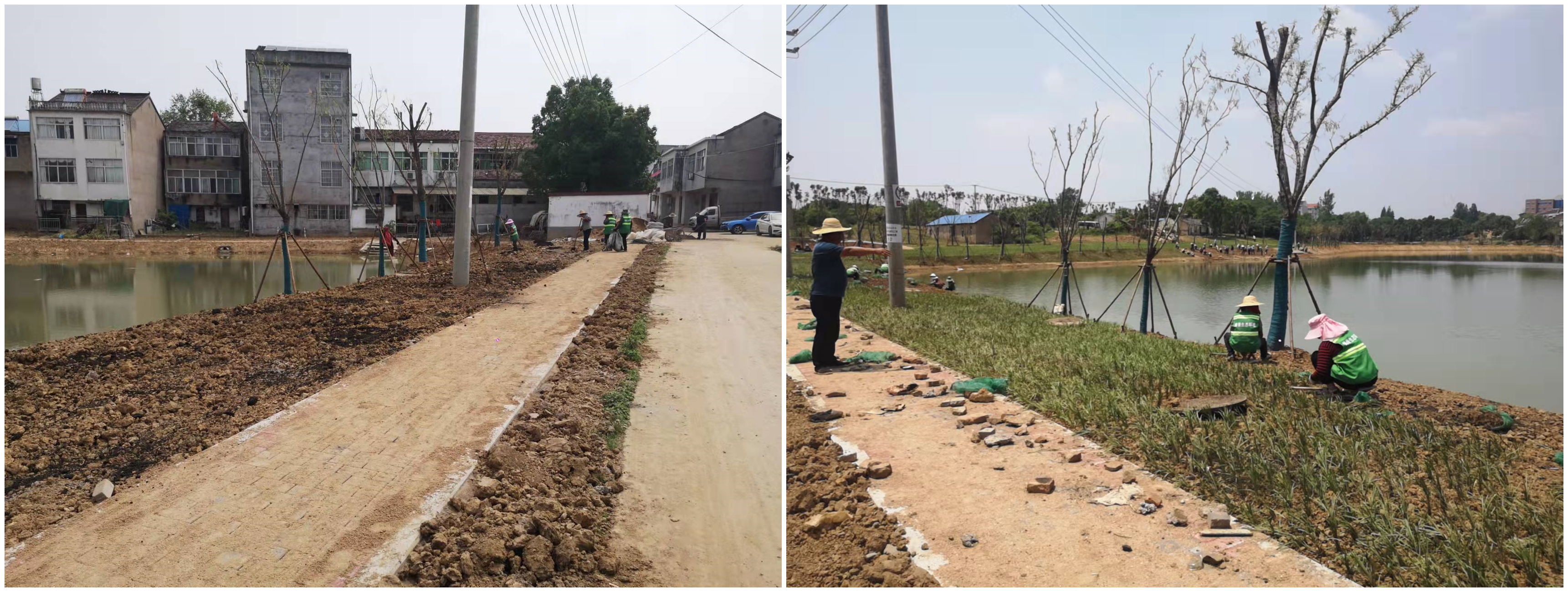 博出景彩 | 山南項目綠化栽植進行中,大公塘邊綠意濃