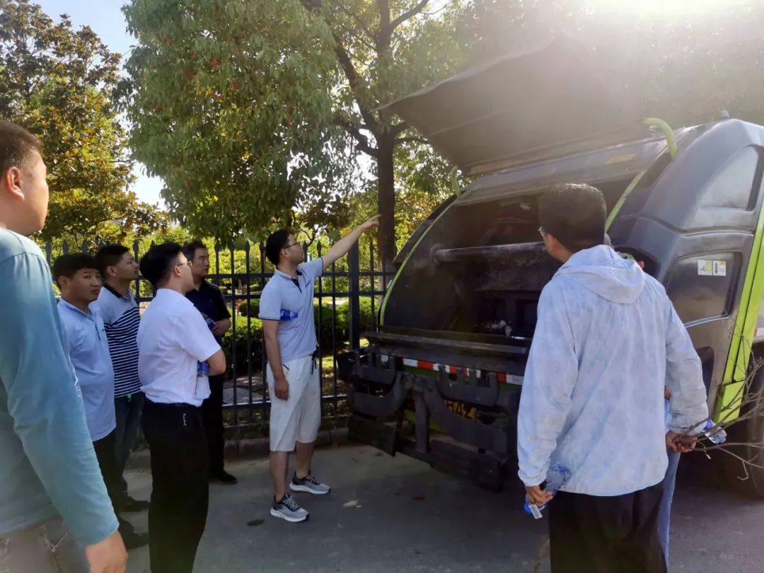 會后,講師來到停車場,分別對洗掃車和垃圾壓縮車的構(gòu)造、性能、維修保護和車輛操作進行了耐心細致的講解。