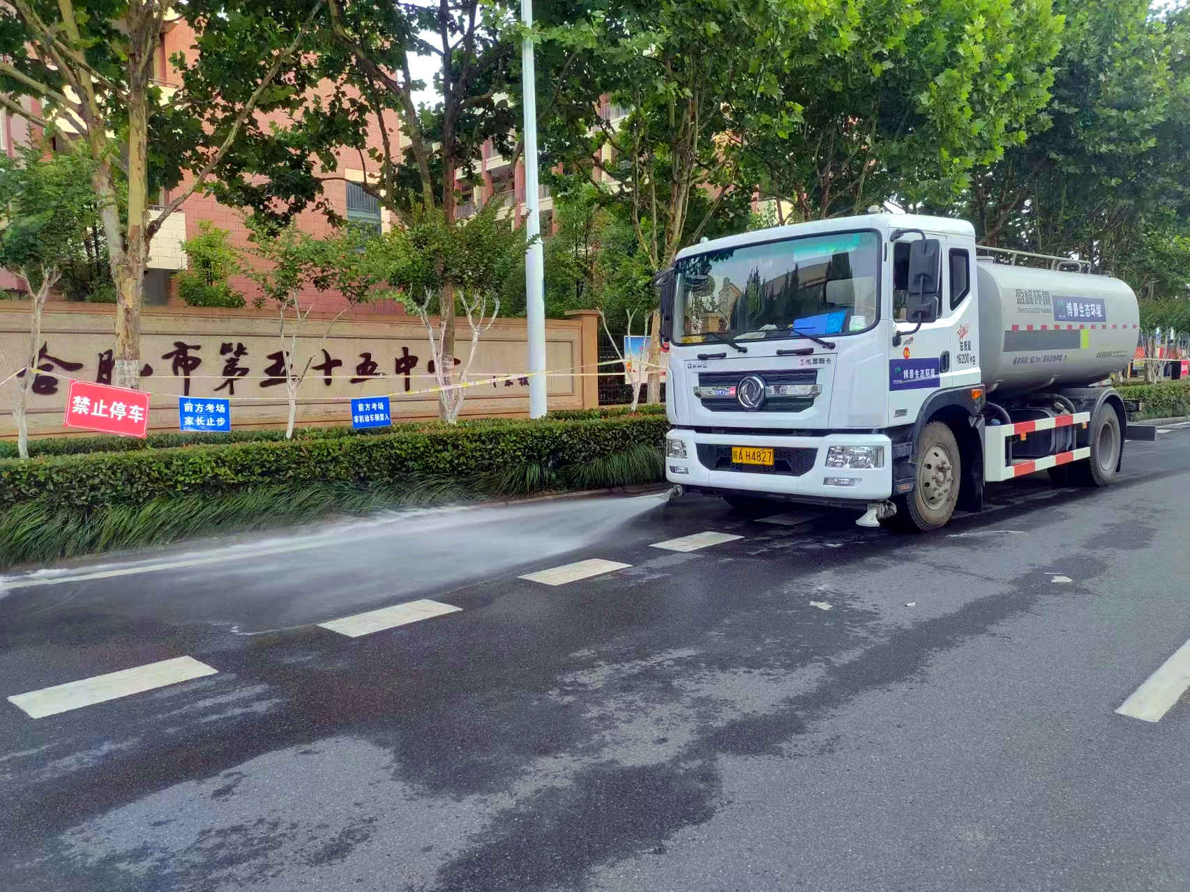 為保證考試點周圍的環(huán)境衛(wèi)生清靜,環(huán)衛(wèi)作業(yè)高效率、高品質(zhì)、高量地進行,生態(tài)環(huán)境保護及機掃車對考試點附近開展提早工作,繞開考試報名時間,推行避峰清理,確保在學生抵達考試點以前進行學校附近的道路清洗。