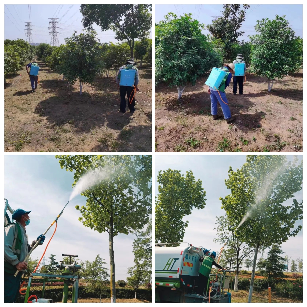春季的來臨,促使溫度迅速回升,喬灌木生根萌芽的同時,也有一些“看不見的敵人”在伺機(jī)而動,它們在等待新葉生長出來后將其破壞,它們就是春季的各類“病蟲害”,春季是綠化植物開花展葉的時期,也是病蟲開始“作祟”的時期。為有效控制苗木病蟲害,確保苗木健康生長,博景生態(tài)環(huán)境股份有限公司方興大道及互通立交等綠化養(yǎng)管護(hù)項目開展綠化苗木病蟲害防治工作。