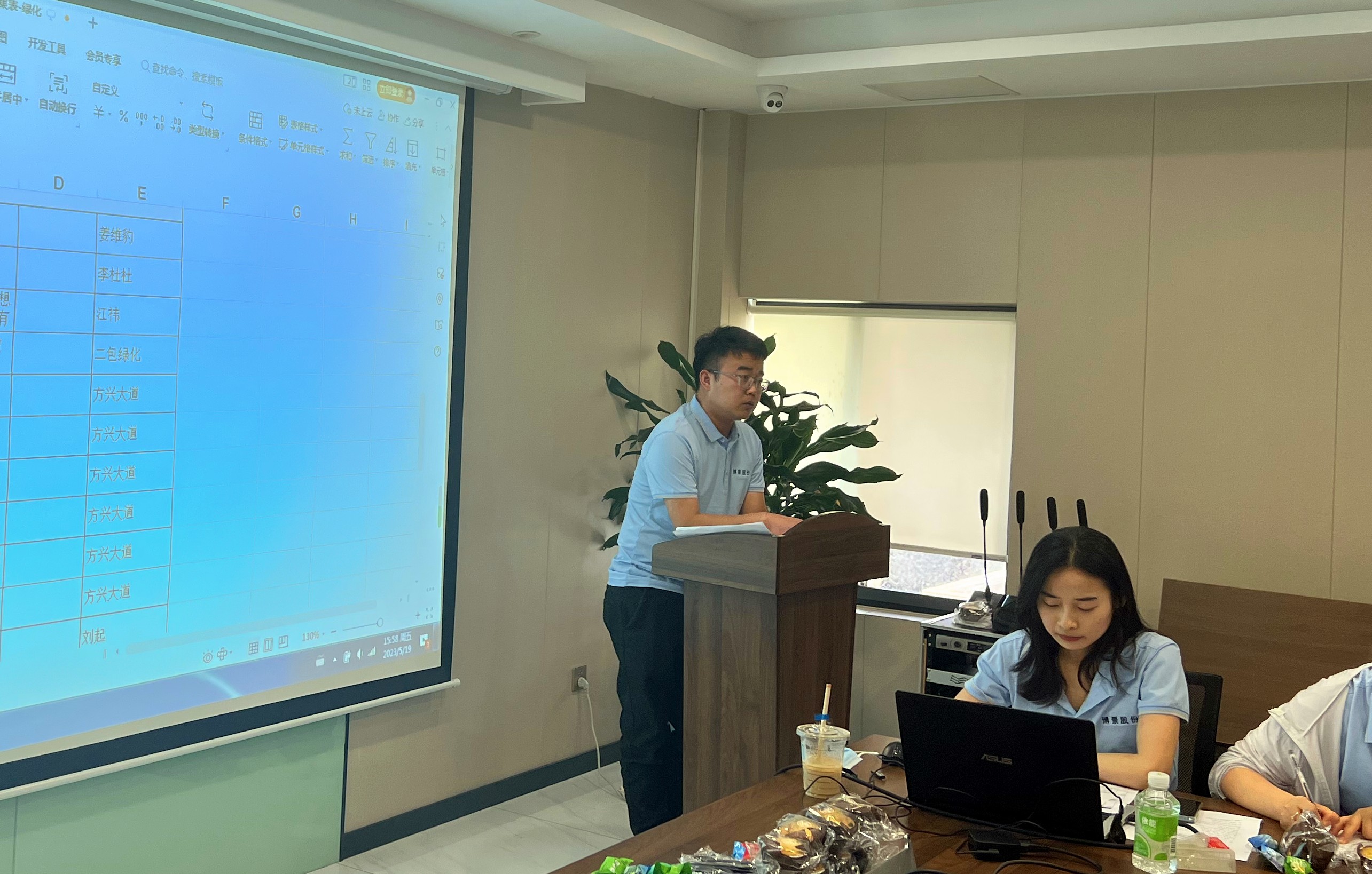 會(huì)議由部門副經(jīng)理王昊然、趙程瑋主講,環(huán)衛(wèi)事業(yè)部所有基層員工、項(xiàng)目經(jīng)理代表顏磊、阮志忠以及部門經(jīng)理紀(jì)春義參加會(huì)議。